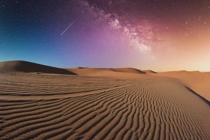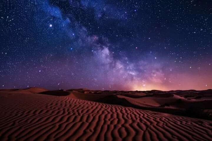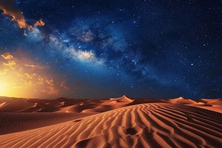 After driving on the dunes, you will have the opportunity to observe the stars and the galaxy in a clear sky, away from the city lights, providing an exceptional experience for space lovers. You can relax under the dark sky, and contemplate the beautiful tranquility of the desert.